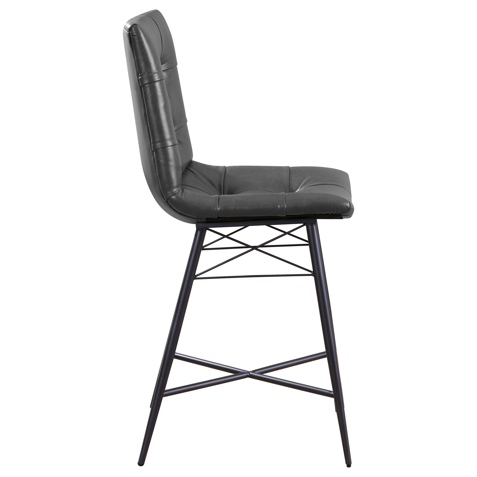 Cool and cozy, this counter height stool is the ultimate dining room upgrade. The padded seat is wrapped in smooth leatherette for an inviting look and feel. Button tufting adds a subtle, decorative touch. A sleek, metal base gives it a modern look while providing plenty of support. Crafted for comfort and lasting durability, this contemporary stool is a smart and stylish choice for the modern home.