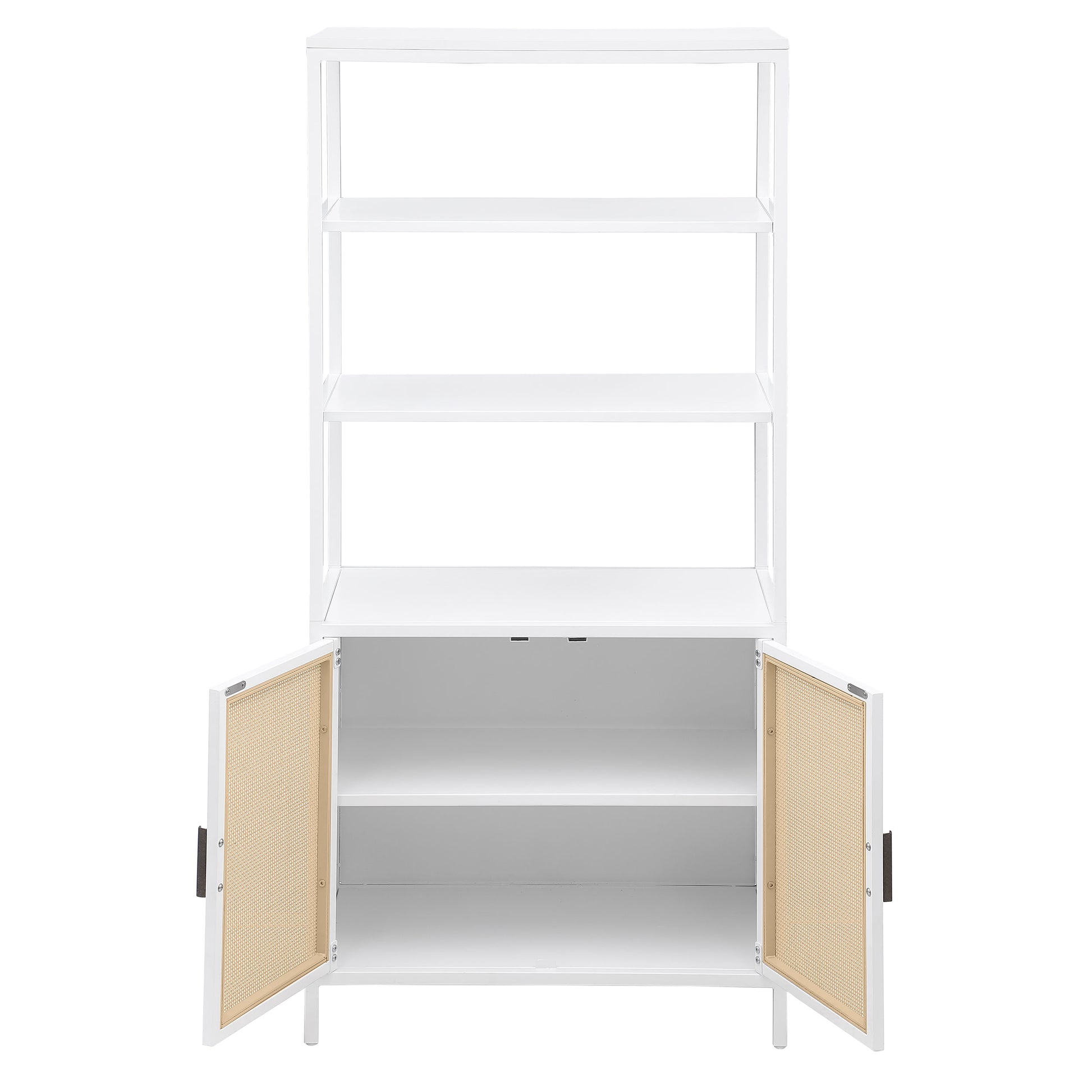 Elevate your storage solutions with this stylish two-door tall accent cabinet, expertly crafted from durable metal for long-lasting support. The sleek powder-coated finish adds a modern touch while providing excellent resistance to scratches and wear. The polyethylene (PE) rattan door fronts bring a hint of coastal charm, adding natural texture to your decor. With three tiers of open shelving, this cabinet offers ample space for displaying decor, books, or essentials, while the enclosed cabinet with a fixed shelf provides additional storage for items you want neatly tucked away. This versatile piece seamlessly combines function with style.