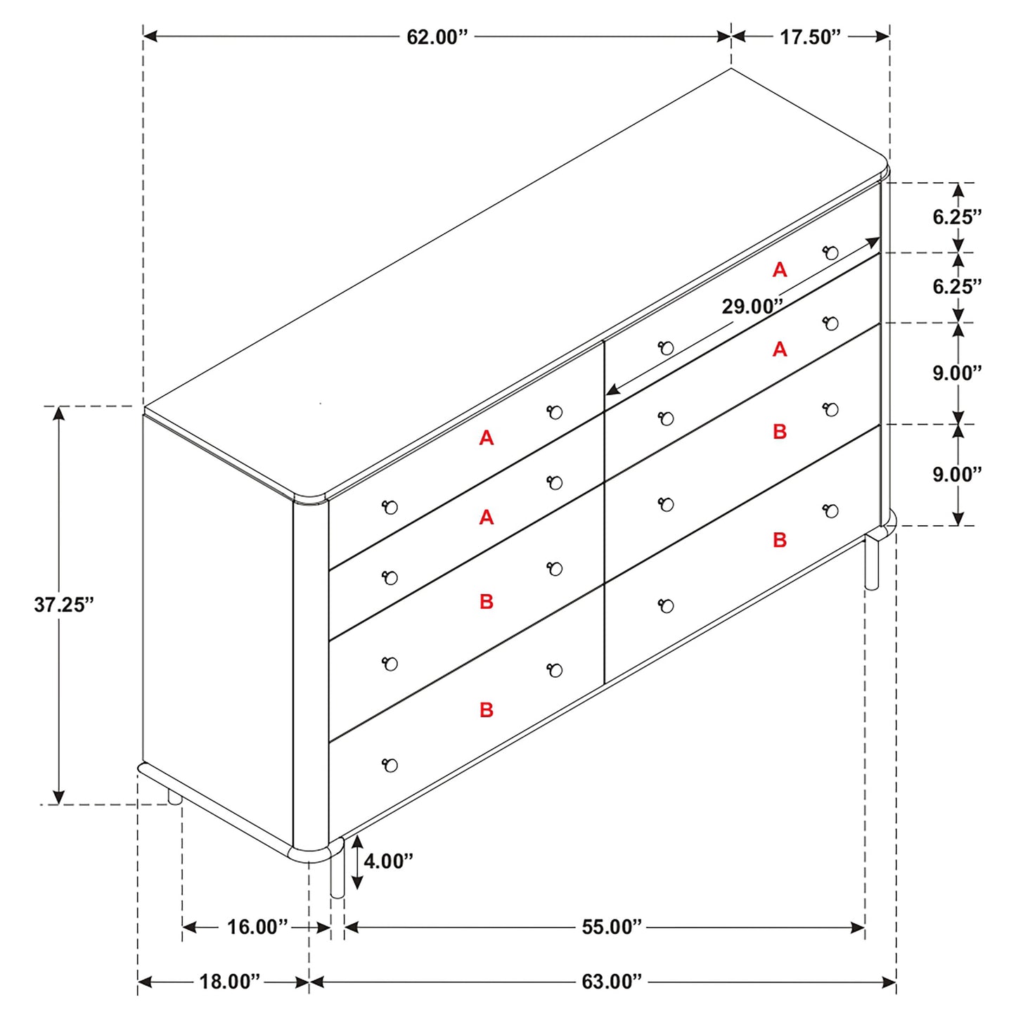 • Chest includes a hidden nested drawer discreetly placed in the third drawer from top