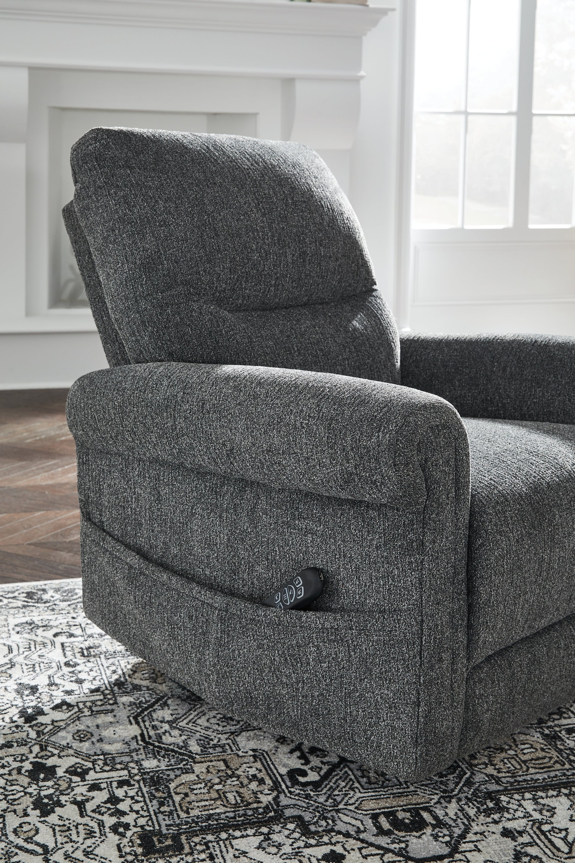 Details | One-touch (hand control) power button with adjustable positions, Corner-blocked frame with metal reinforced seat, Attached cushions, High-quality foam cushions wrapped in poly fiber, Polyester upholstery, Next-Gen Nuvella is a performance fabric that is soft, easy to clean, stain-resistant and durable, Clean fabric with mild soap and water, let air dry; for stubborn stains, use a solution of 4 oz. bleach to 28 oz. water, Power lift feature gently raises seat and eases you to your feet from a sitting position or fully reclined, Heat and massage elements feature auto shut-off after 30 minutes, Dual motors control the footrest and back independently for custom comfort positioning, Emergency rechargeable battery backup available (sold separately), in case of power outage, Power cord included; UL Listed | |