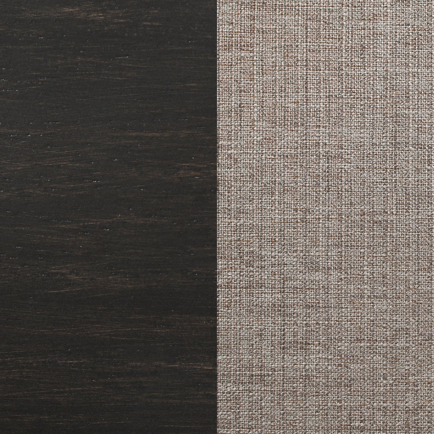 This set of two dining side chairs defines the classic traditional aesthetic with an extra dose of bold, opening up multiple options for assembling a dining space you’ll come to love. Rubberwood and wood products construction is sturdy and stable, reflecting the best of old-style quality. With a dramatic charcoal sand through finish and notable farmhouse-inspired details that include a flared back silhouette, a ladderback design, and turned front legs. A lightly curved side silhouette offers tapered back legs. Dine or relax with comfort in padded chairs featuring textured light stone brown fabric upholstery.