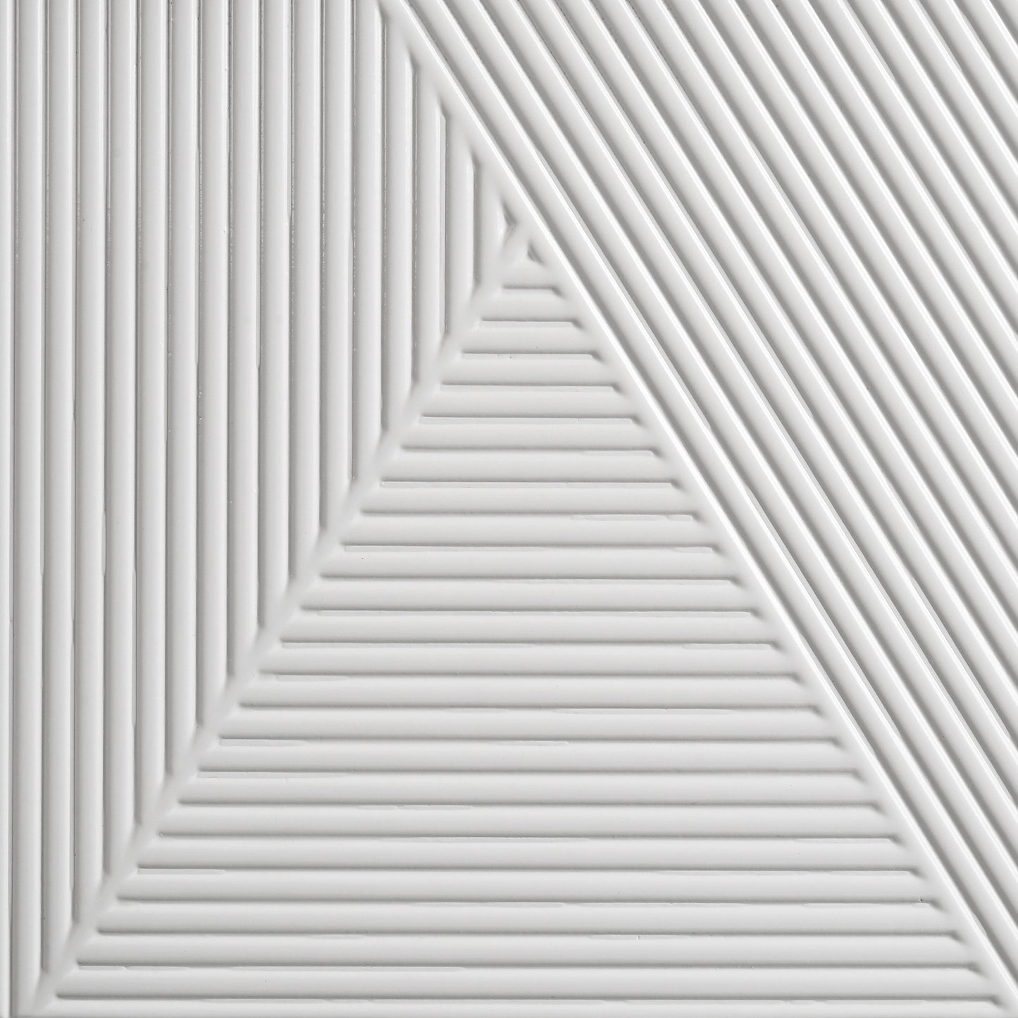 Crisp white high gloss and sculptural textures define this modern bedroom set, blending sleek surfaces with dimensional details. Geometric drawer fronts feature ribbed V-patterns and polished chrome pulls, while all drawers glide smoothly on 45mm metal extension hardware. The headboard stands out with chevron-tufted white faux leather framed by soft white LED trim. Completing the ensemble, a coordinating LED dresser mirror adds ambient glow and polished symmetry to the space. Elevated on chrome legs, this set is a showcase of contemporary form and function.