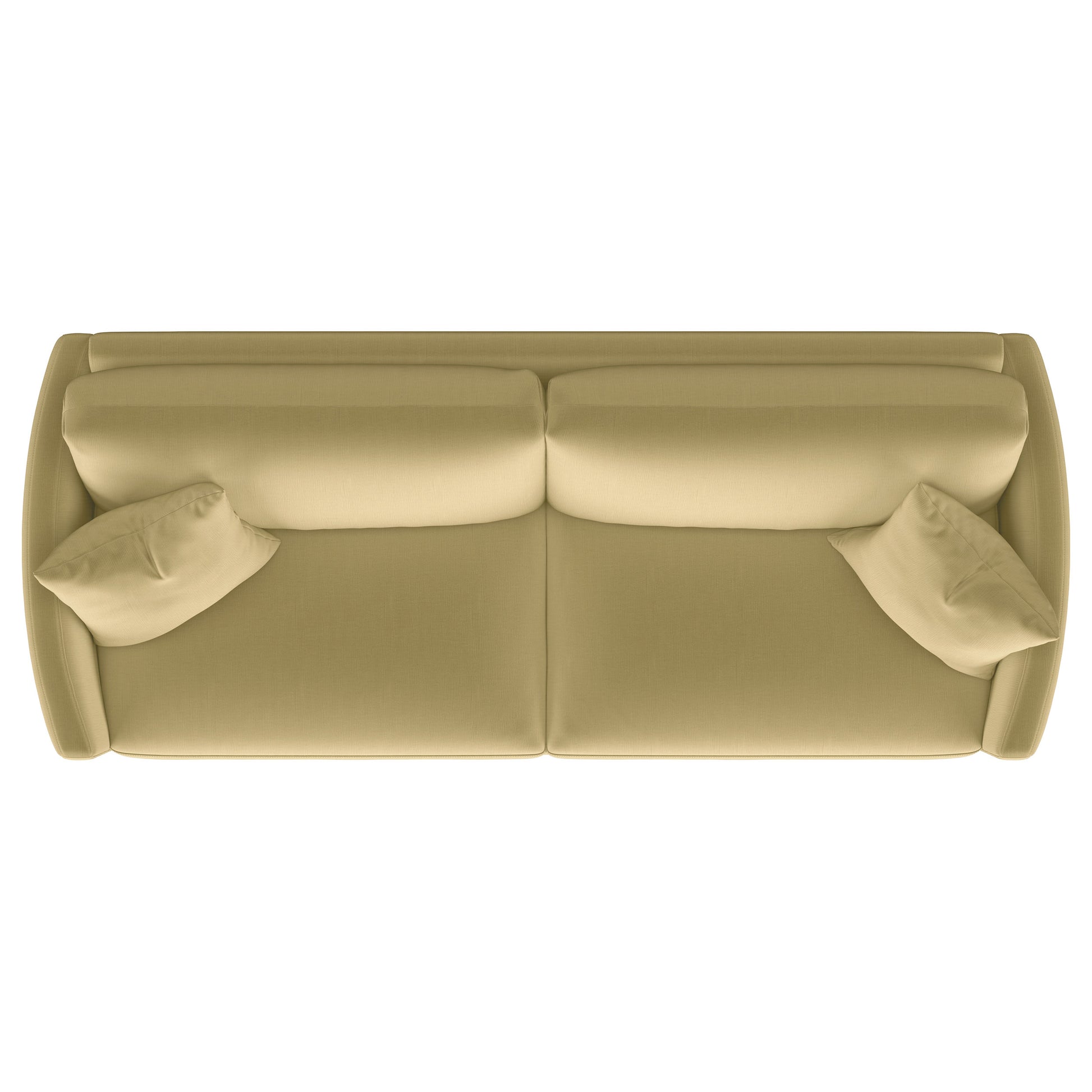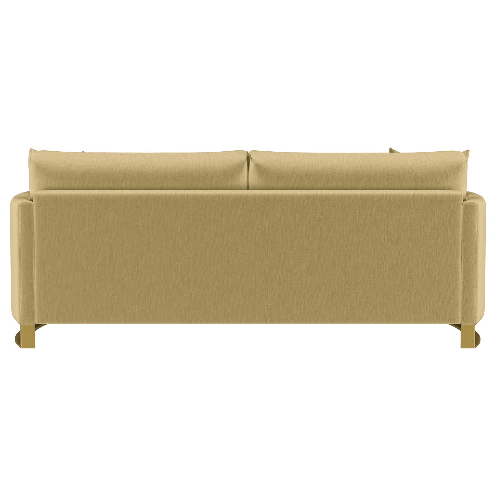 Indulge in opulent comfort with this textured velvet sofa. Its reversible feather blend seat and back cushions, complemented by curved arms and gold stainless steel legs. Smooth upholstery and lustrous details blend simplicity with timeless splendor, making this piece a perfect focal point for refined interiors. With its inviting profile and graceful presence, it elevates both style and relaxation.