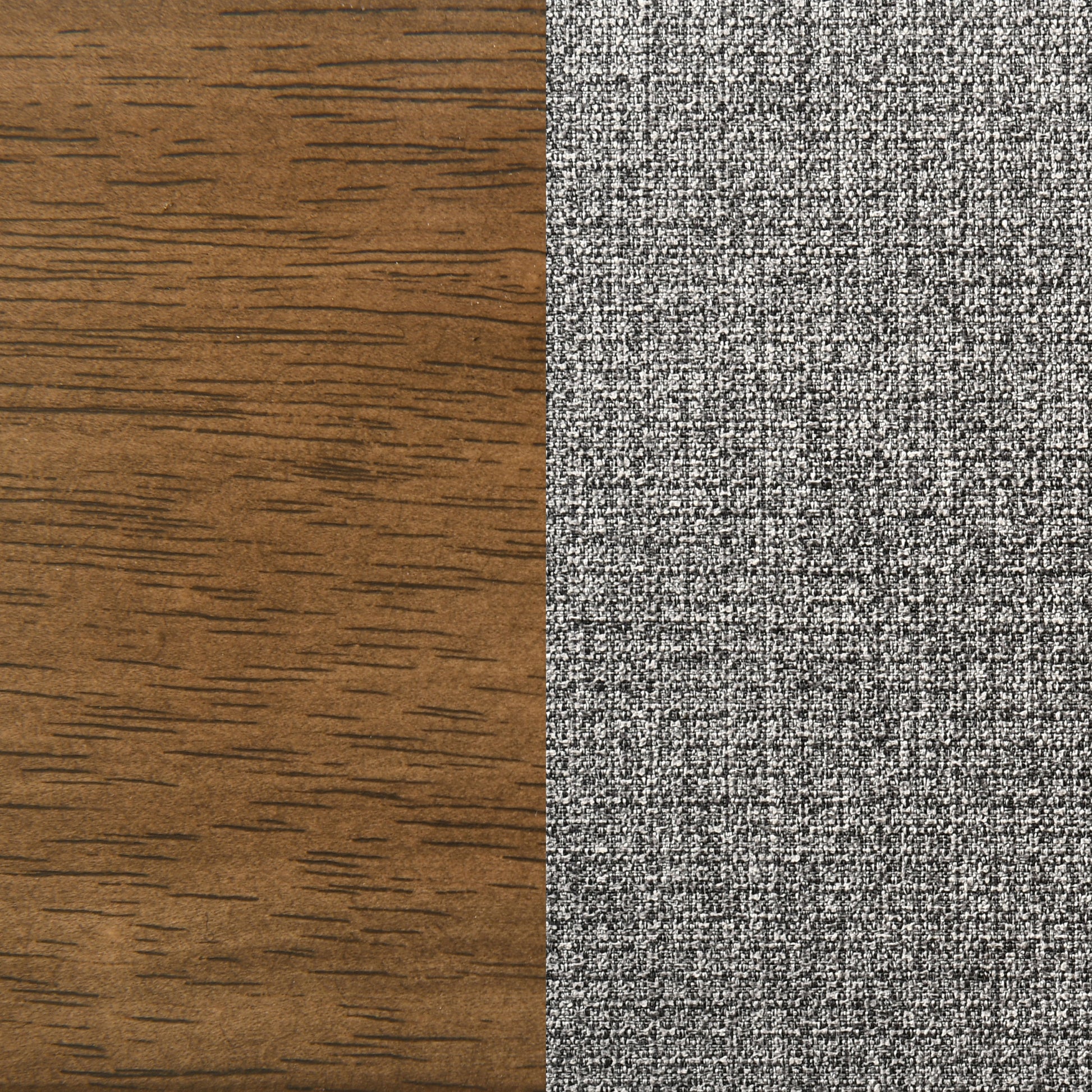 • Upholstered in soft grey fabric with a textured weave for an elevated neutral tone