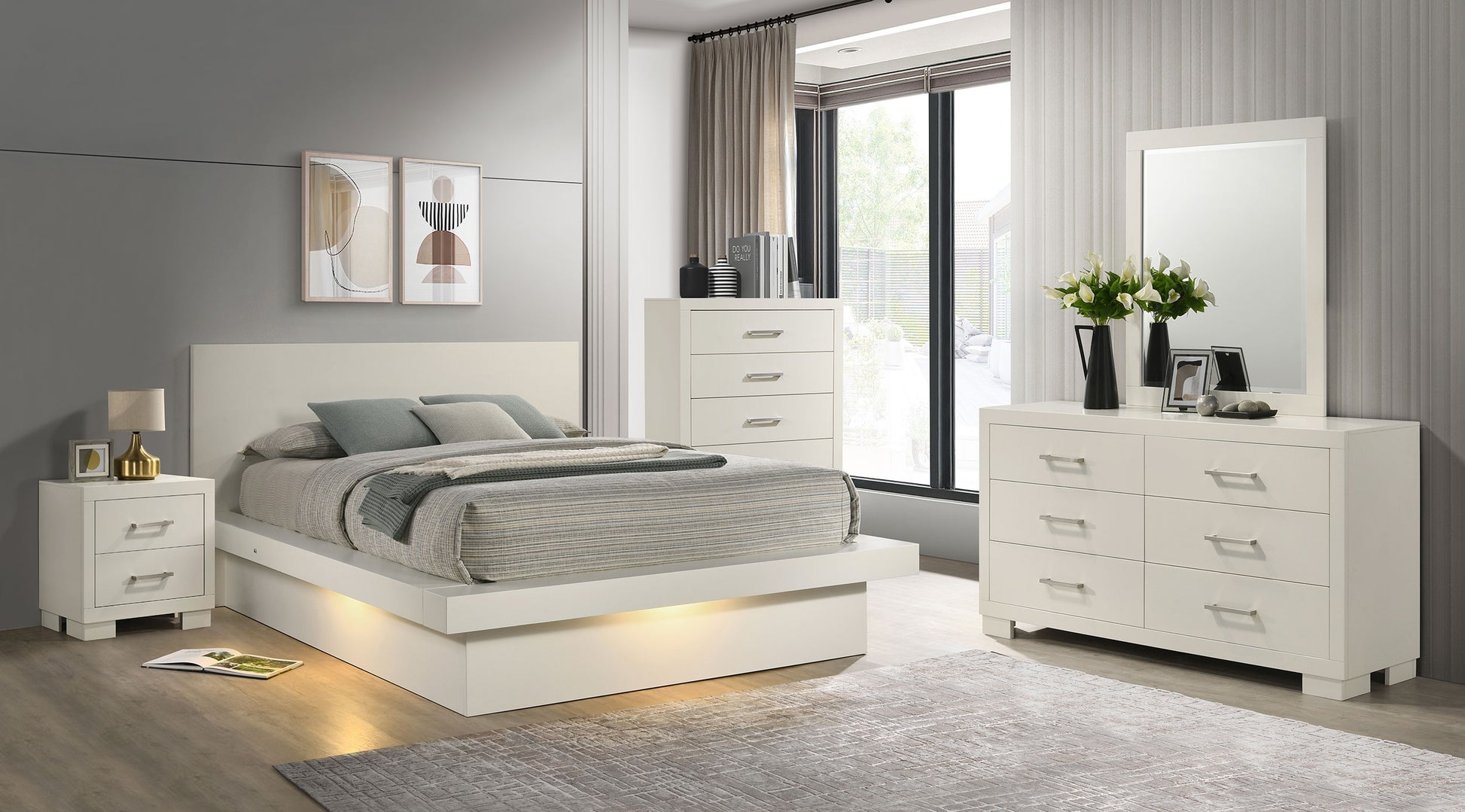 Jessica 4-piece Eastern King LED Bedroom Set Snow White