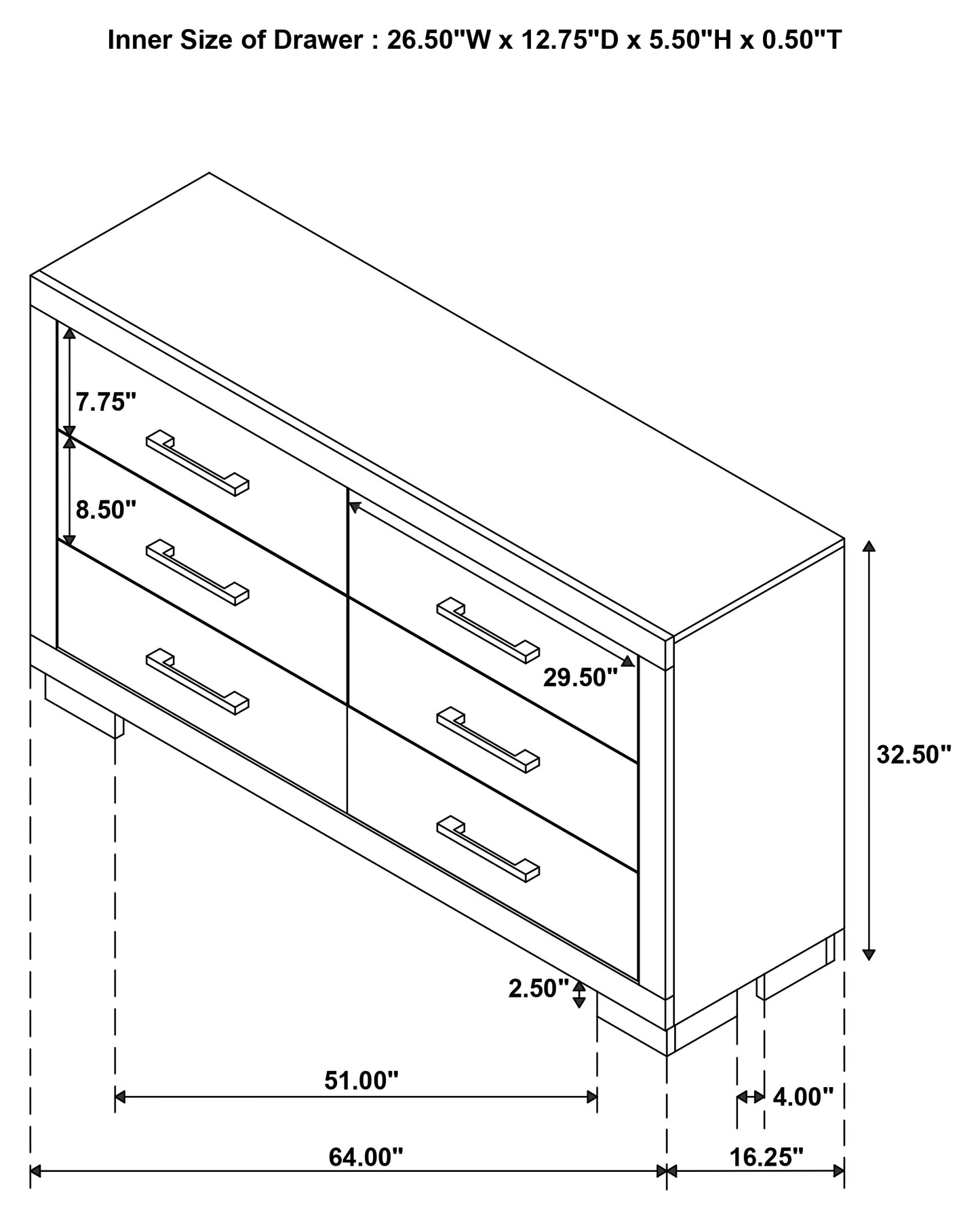 Jessica 6-drawer Dresser with Mirror Cappuccino