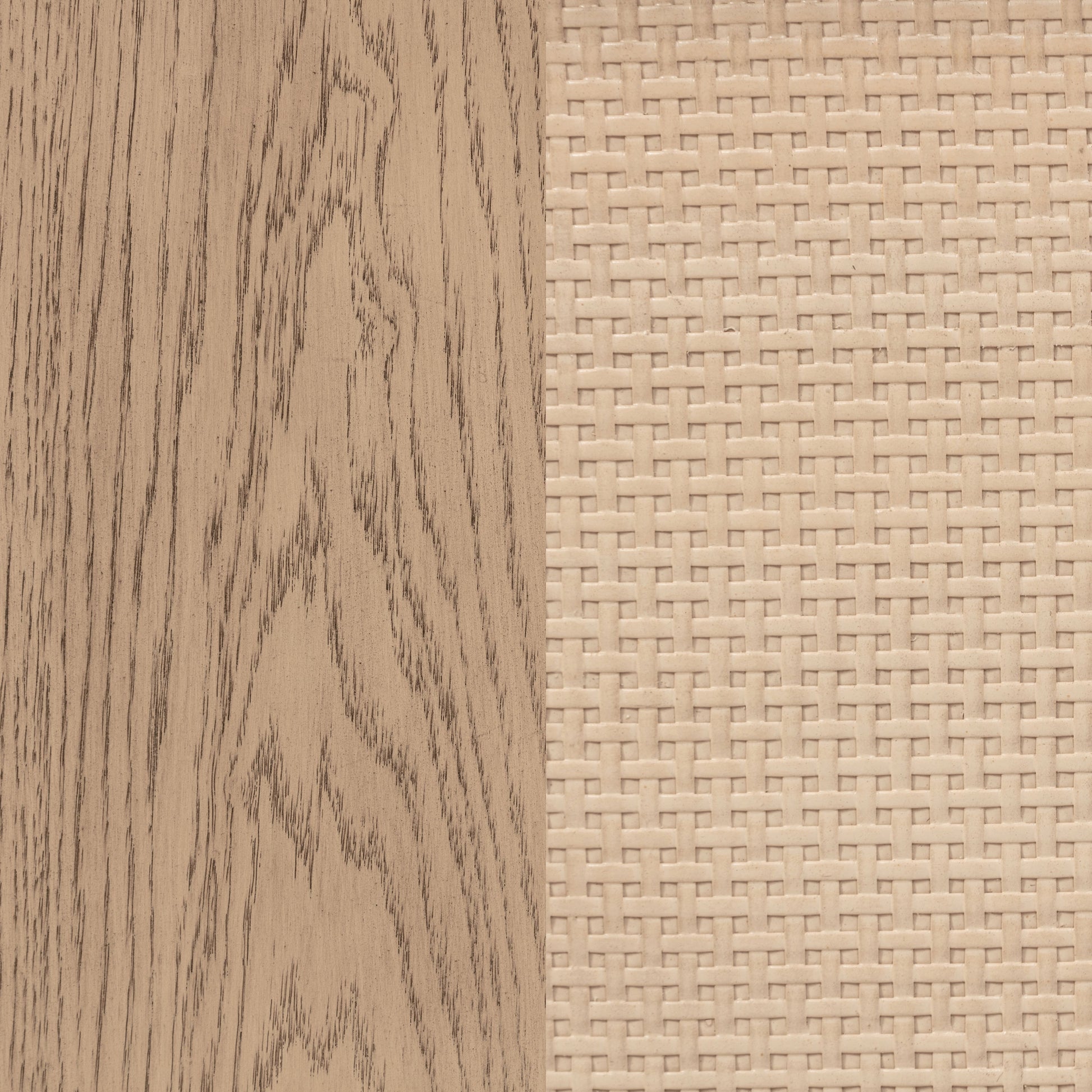 • Crafted with solid poplar, engineered wood, white oak veneer, and resin cane