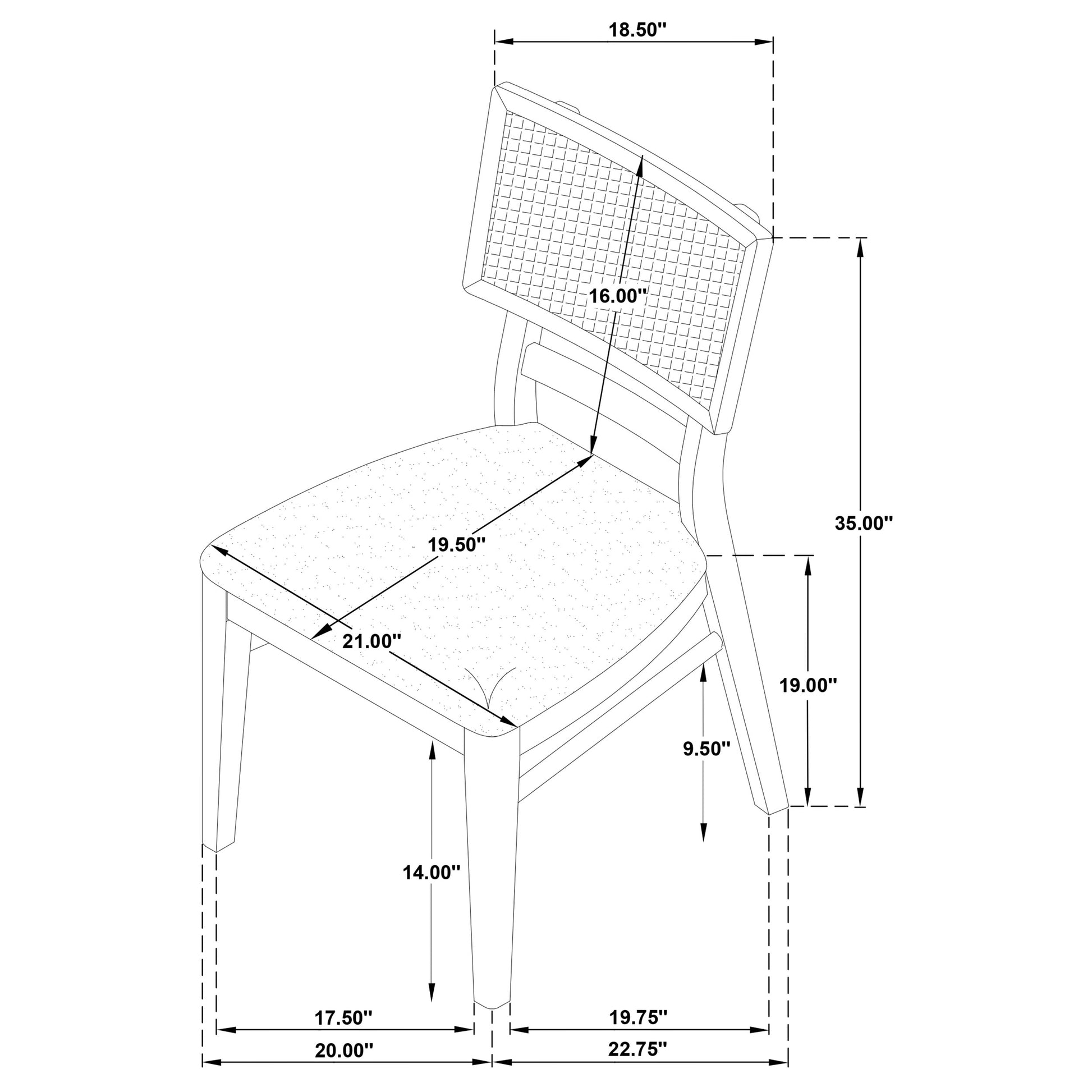 • Hand-woven radio weave cane backrests on chairs add artisanal detail
