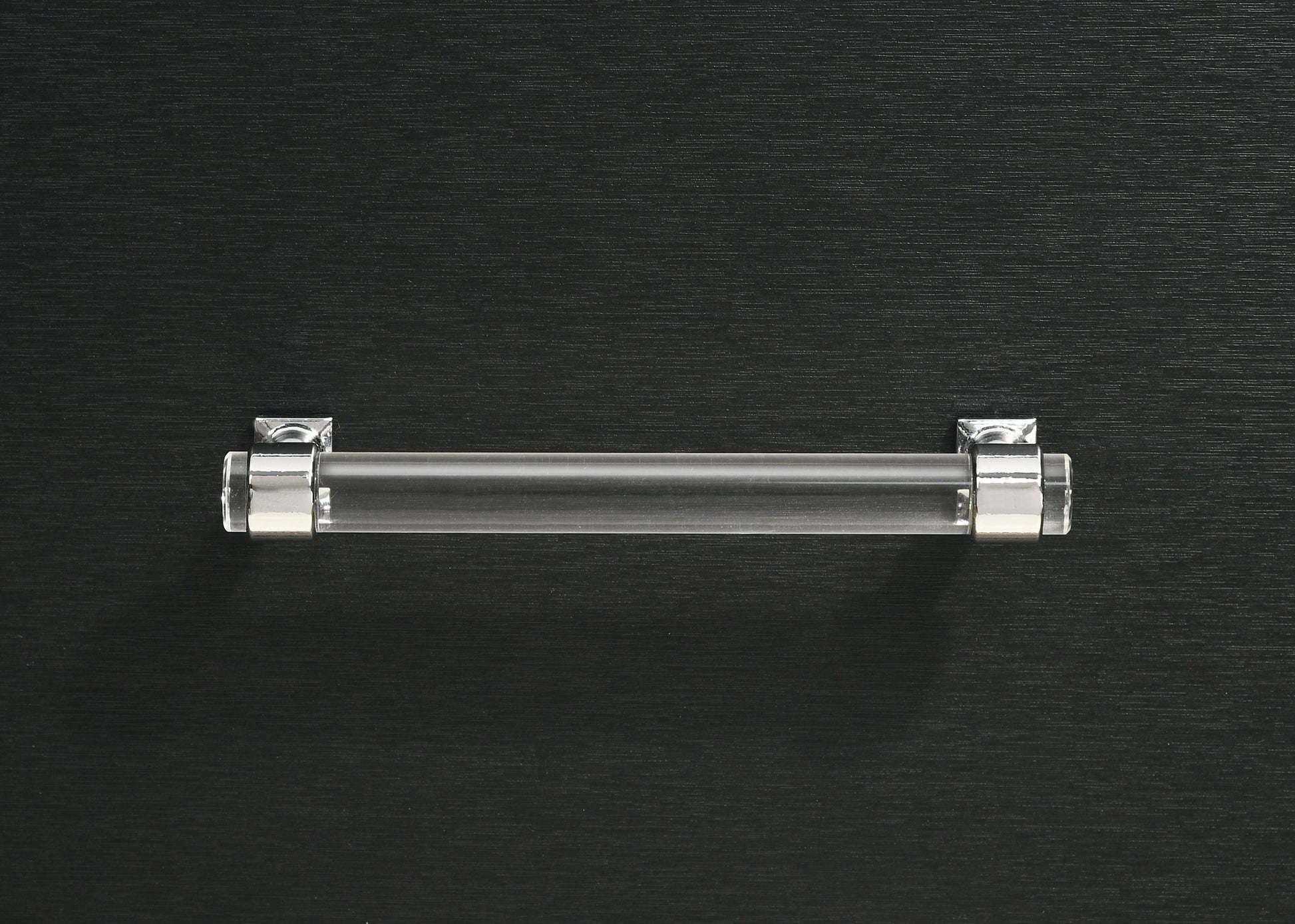 • Glossy chrome finish trim complements matching bar pulls and decorative legs to bring gleaming warmth
