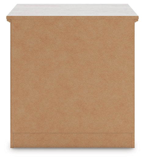 Looking to create a bedroom that feels airy and beautifully put together? This casually comfy nightstand is your perfect solution. Its clean lines, whitewash finish and replicated pine grain exude a charming cottage-inspired feel that brightens your restful retreat. Spacious drawers with dark bronze-tone knobs keep your nighttime necessities nearby, while USB charging keeps you connected. Now there’s a fresh take on country living we can get behind.