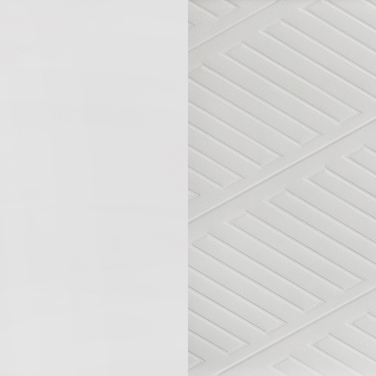• White finish with picture framed recessed panels and embossed herringbone graphic patterns