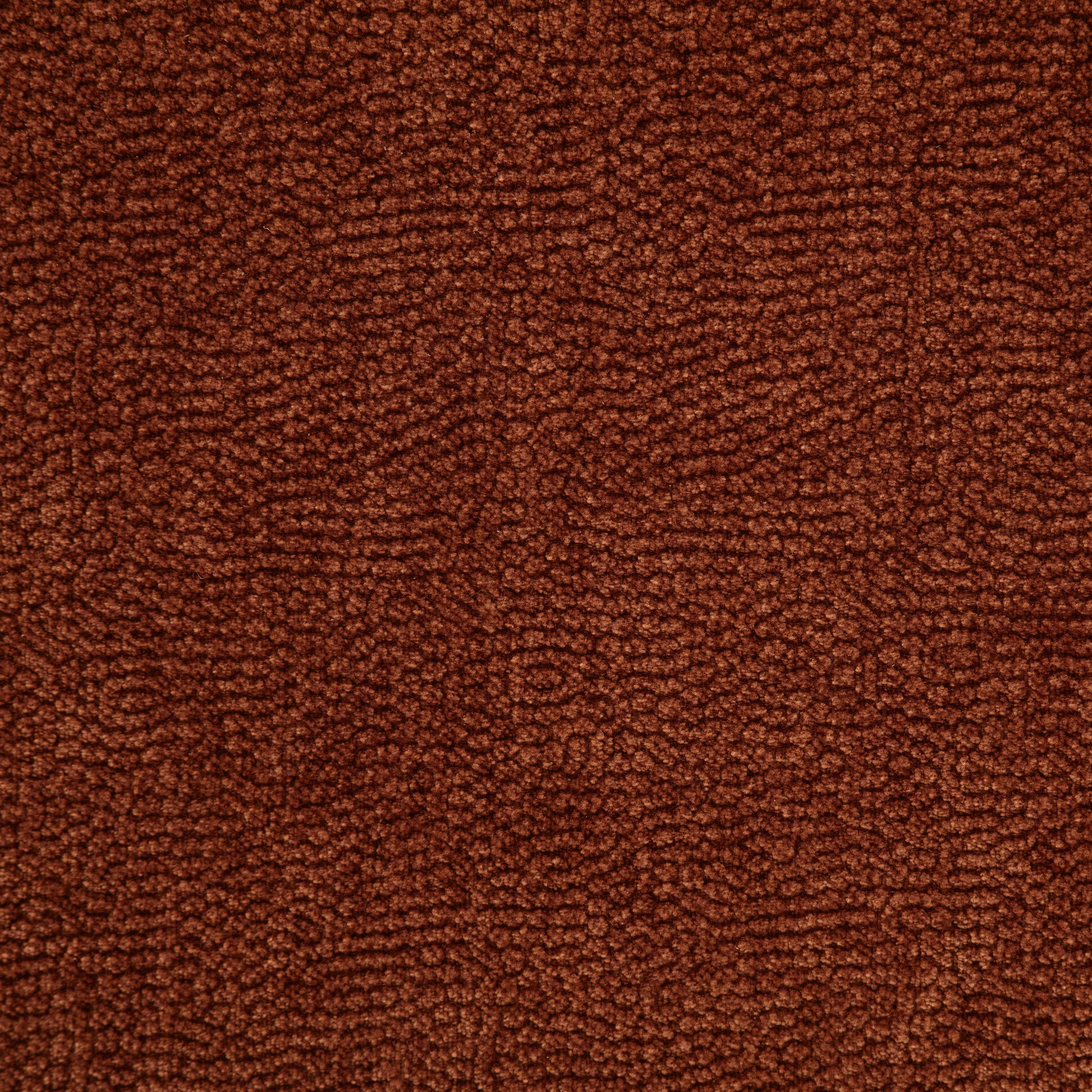 • Burnt orange chenille upholstery adds soft texture and cozy warmth to the frame