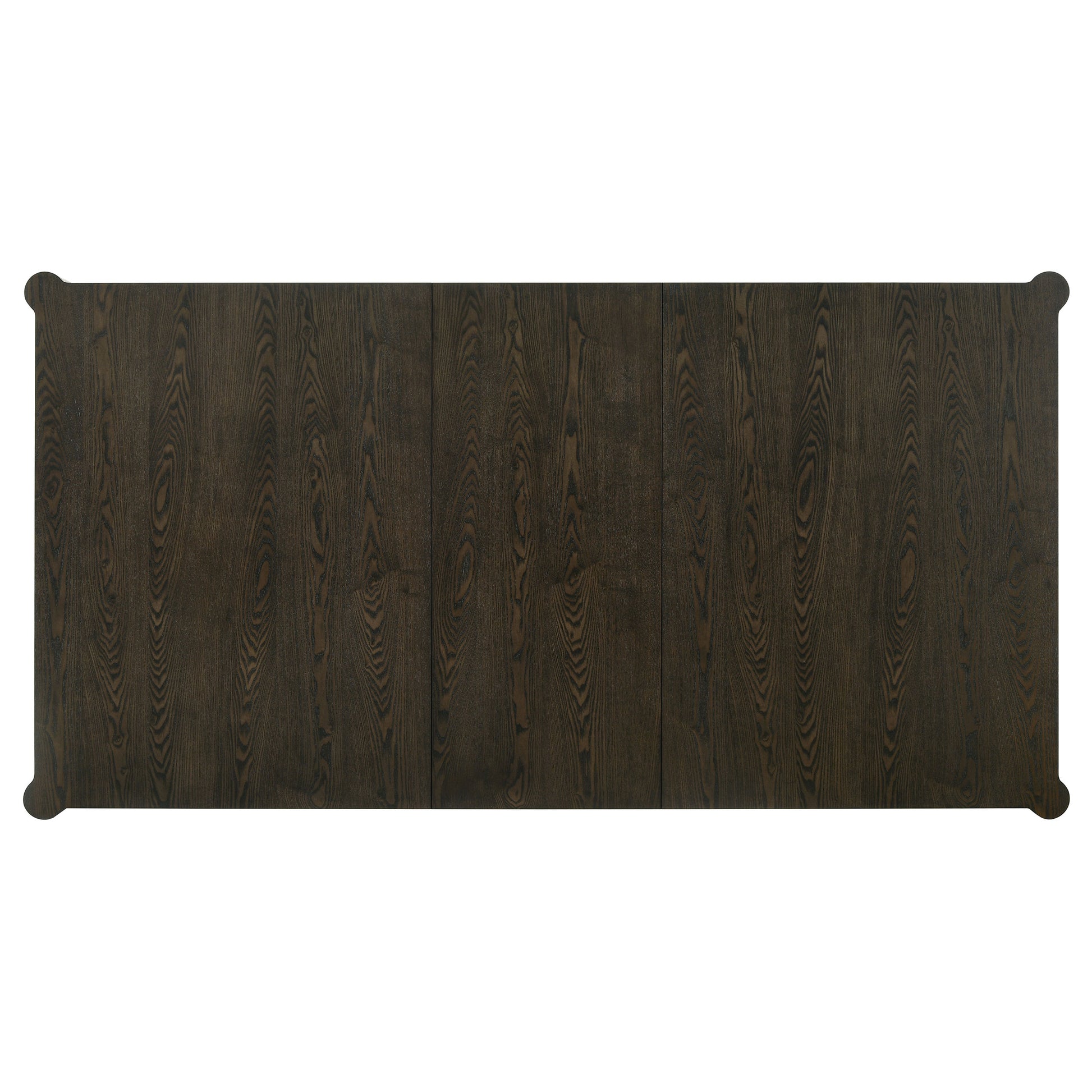 • Dining table with a rich ash brown finish and natural wood grain