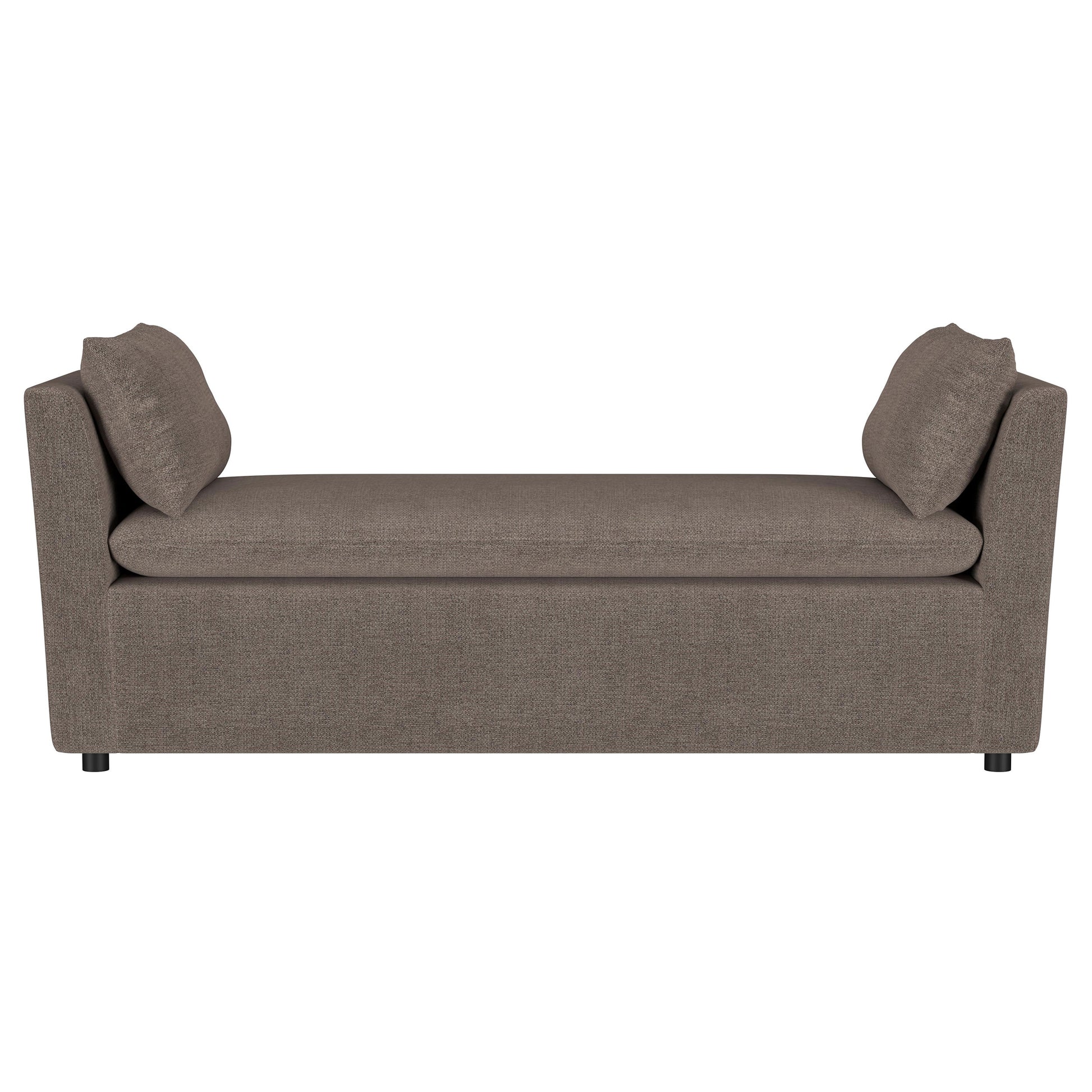 Create a chic spot for lounging or relaxing with a modern upholstered bench. With plush foam cushions and accent pillows, this backless design is ideal for a cozy primary suite or stylish living room. It features rubberwood framing for excellent durability, and is covered in dimensional brown upholstery. Its neutral palette is rich and refined, easily blending in myriad spaces and surrounding decors. The bench includes gently rounded arms that add a sense of structure, and a pair of accent pillows that add inviting softness.
