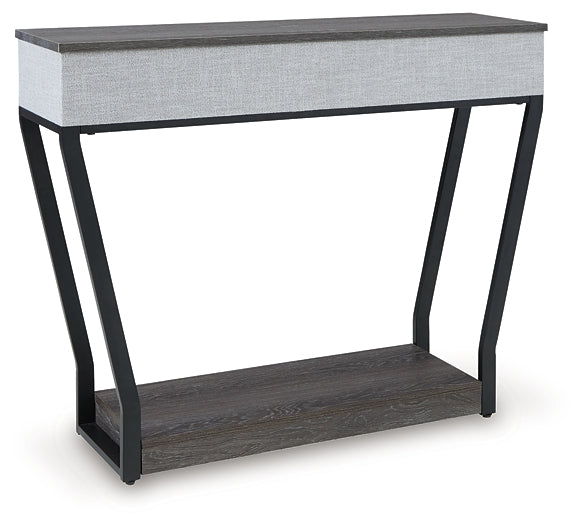 With its decidedly contemporary form, this console sofa table wows with subtly integrated functional features. Wirelessly connect your audio to its built-in speakers for ambiance as you host guests or relax solo. Need to charge up as you lounge? Rest this console against the back of your sofa to keep its wireless and USB charging options in reach. The table's spacious top and lower shelf leave plenty of room to customize the look with your favorite decorative accents.