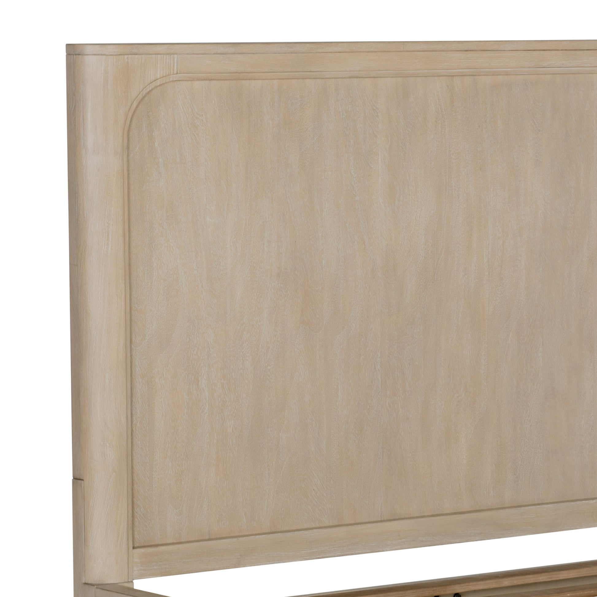 With its serene silhouette and sculpted frame, this platform bed brings quiet elegance to the heart of the bedroom. Rounded corners and softened edges create a peaceful flow, while the tall paneled headboard offers a moment of architectural beauty. Designed with a slat kit and platform panels, it provides sturdy, supportive rest without the need for a foundation. Crafted from mahogany, engineered wood, and mango veneer, it embodies lasting grace.