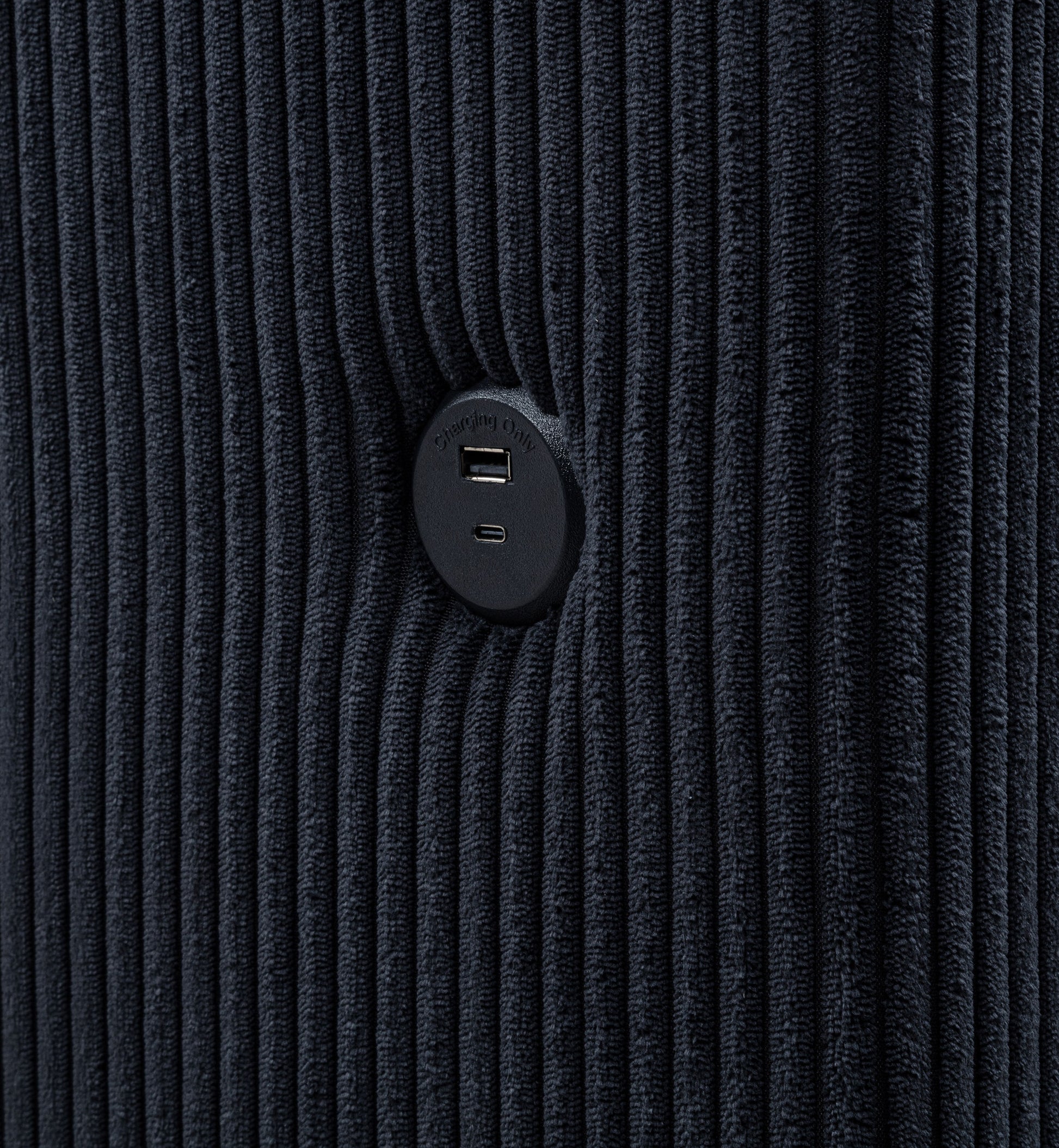 • Plush black faux fur-like corduroy fabric delivers striking, tactile softness and bold style