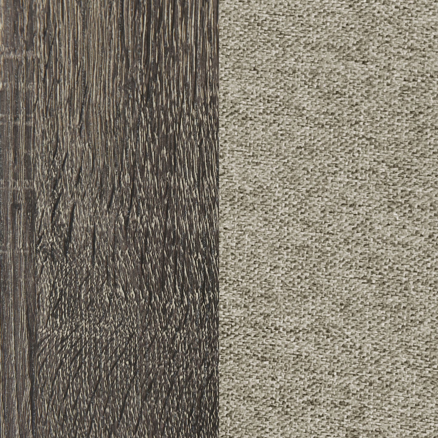 Create your ideal bedroom ambiance with the fresh, casual style of this transitional bedroom set. It features engineered wood construction with durable laminate surfaces, creating a stylish look with its brown oak wood grain finish. The set is clean lined, delivering a tall, squared headboard with foam padding and tan upholstery, creating the perfect place for lounging and reclining. The bed is complete with a low footboard and rails, offering a complete look that remains open and airy, great in small and large bedrooms alike. Storage pieces add ample drawer space and roomy tops, perfect for creating organization and offering a place for a personal touch of decor.